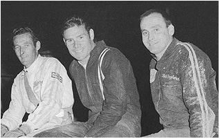 Top team in Sydney 1967-68. Owner Don Mackay (left), drivers Barry Butterworth (centre) and Ray Oram (right). (L and R David Cumming photos. From Liverpool City Speedway. The Place of Pace, by Tony Loxley, Full Throttle Publications, NSW) and (centre) Alan Batkin photo from http://justmidgets.homestead.com/BatkinP1.html)