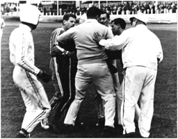 Max Linklater (ESRA Steward) wrestles with Barry after he had pushed one of George Tatnell’s crew to the ground following an exchange of words. Barry always provided plenty of action!
